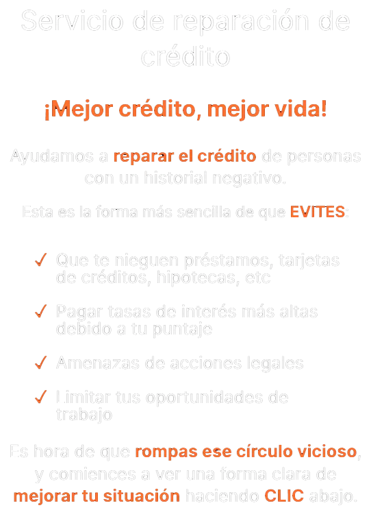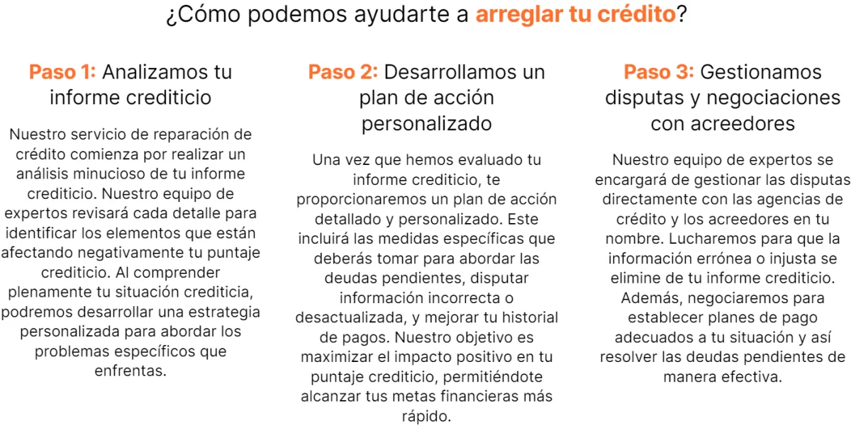 La reparación de crédito es un proceso mediante el cual una empresa o profesional trabaja para mejorar el historial crediticio de un individuo. Esto implica disputar información inexacta o injusta en los informes crediticios, negociar con acreedores y ofrecer asesoría financiera para lograr un mejor puntaje de crédito y más oportunidades financieras.